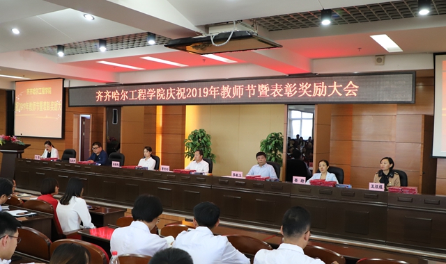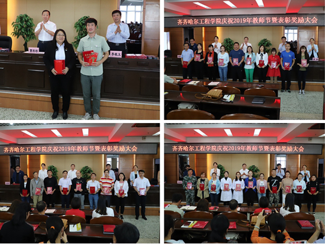 学院党委书记李敏义首先在会上宣读《关于表彰全省优秀教师和优秀教育工作者的决定》《关于表彰2019年度全省师德先进集体和师德先进个人的决定》《齐齐哈尔工程学院关于表彰奖励优秀教师、优秀教育工作者、师德先进集体和先进个人的决定》。