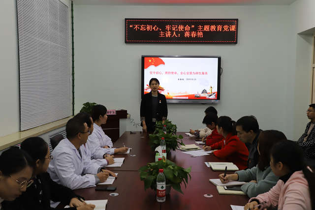 蒋春艳副院长在为机关第二党支部和健康与护理系全体教职工党员讲授的题为《坚守初心,勇担使命,全心全意为师生服务》专题党课中,为大家讲解“不忘初心、牢记使命”主题教育提出的背景和意义,引领大家思考我们不能忘记的初心是什么、我们必须牢记的使命是什么。强调要在读原著、学原文、悟原理上下功夫,做到深学深悟、常学常新。提出要在学习中对照合格党员的标准找差距,从教师教学、管理工作、学生学习等各方面反思自身和工作中存在的问题,并且要敢于直面问题,勇于改正错误,把“初心”和“使命”落实到深入基层、贴近群众、倾听基层教职工心声,主动服务教育教学的工作之中。