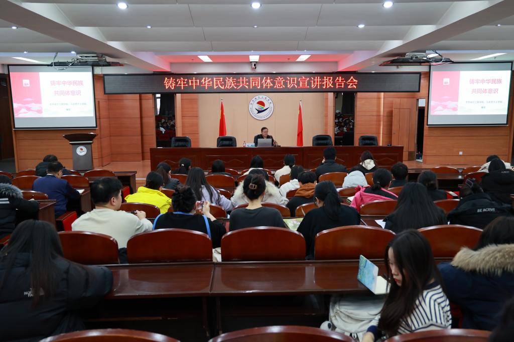 为深入贯彻落实习近平总书记关于加强和改进民族工作的重要思想,引导广大师生深入理解中华民族共同体意识的深刻内涵,12月6日下午,学校党委在图书馆601报告厅举办“铸牢中华民族共同体意识”宣讲报告会,本次报告会邀请马克思主义学院教授魏军主讲,学校各民主党派全体成员、无党派人士、各基层党组织书记以及学生代表参加。