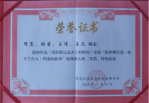 4.AI技术融入,品牌形象生动呈现。借助AI技术,录制学校最新宣传片,生动展现学校办学特色、历史文化底蕴与发展活力,强化师生的归属感与认同感;制作视频《用影像记录齐工程辉煌》,获省高等院校档案学会短视频征集评选活动二等奖。