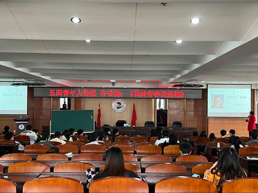 为弘扬“爱国、进步、民主、科学”的五四精神,激励广大青年团员刻苦学习、奋发有为。5月3日下午,由校团委主办五四青年大讲堂活动在图书馆601举行。学校原党委副书记许长艳应邀做客大讲堂,作题为《我的青春我的城》专题报告,校团委书记郭明敬及各系师生代表150余人现场参加活动,2300名青年学生线上聆听。