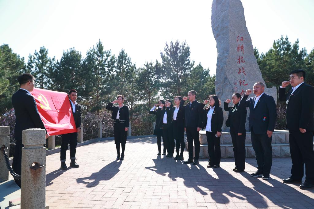 参观见学结束后,党委组织部副部长张苗带领全体人员面向党旗高举右拳,重温入党誓词,声音铿锵,庄严肃穆。
