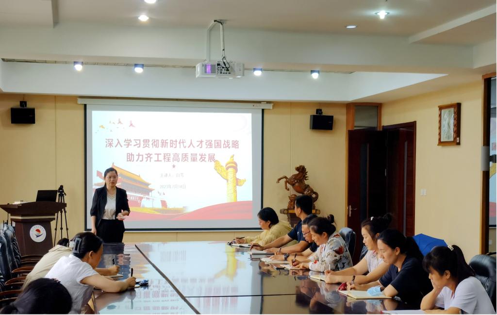 白雪副院长以《深入学习贯彻新时代人才强国战略助力齐工程高质量发展》为题,围绕深入学习新时代人才强国战略学校人才建设实践两个方面,结合工作实际,为与会人员上了一堂生动的党课。