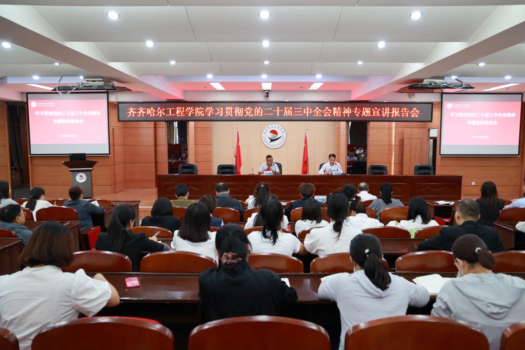 为全面深入学习贯彻党的二十届三中全会精神,切实引导全校师生把思想和行动统一到全会精神上来,扎实推进各项工作入脑入心、落实落靠、见行见效,9月6日,学校聚焦党的二十届三中全会精神,开展专题宣讲报告会,邀请马克思主义学院顾问祝福恩教授作宣讲报告,党委书记郭伟东主持。