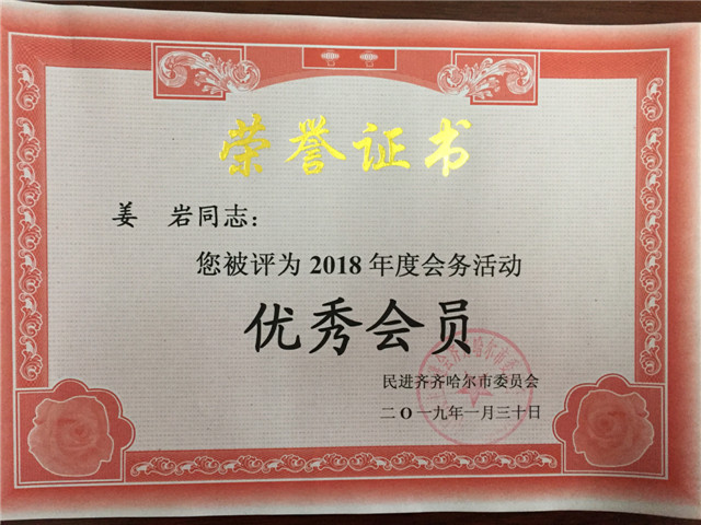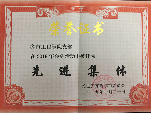 月31日下午,在民进齐齐哈尔市委2018年度总结表彰大会上,民进齐齐哈尔工程学院支部被授予“先进集体”荣誉称号,姜岩、李亚娟、孟艳辉被授予“优秀会员”荣誉称号。